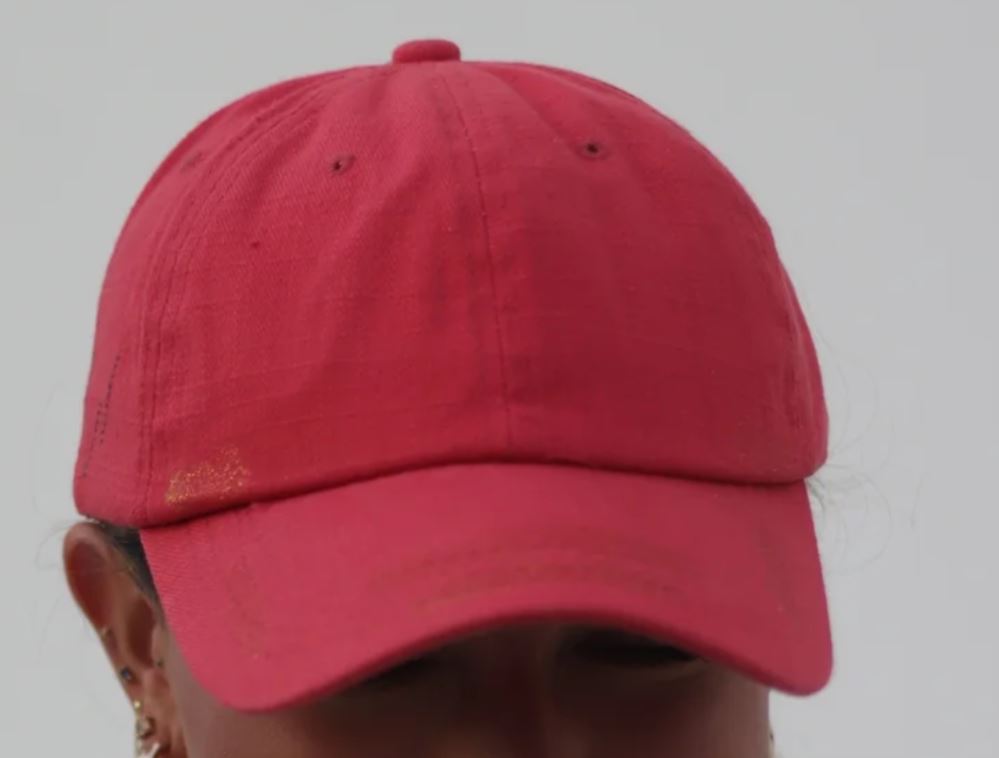 Red Hat with Gold Glitter Accents