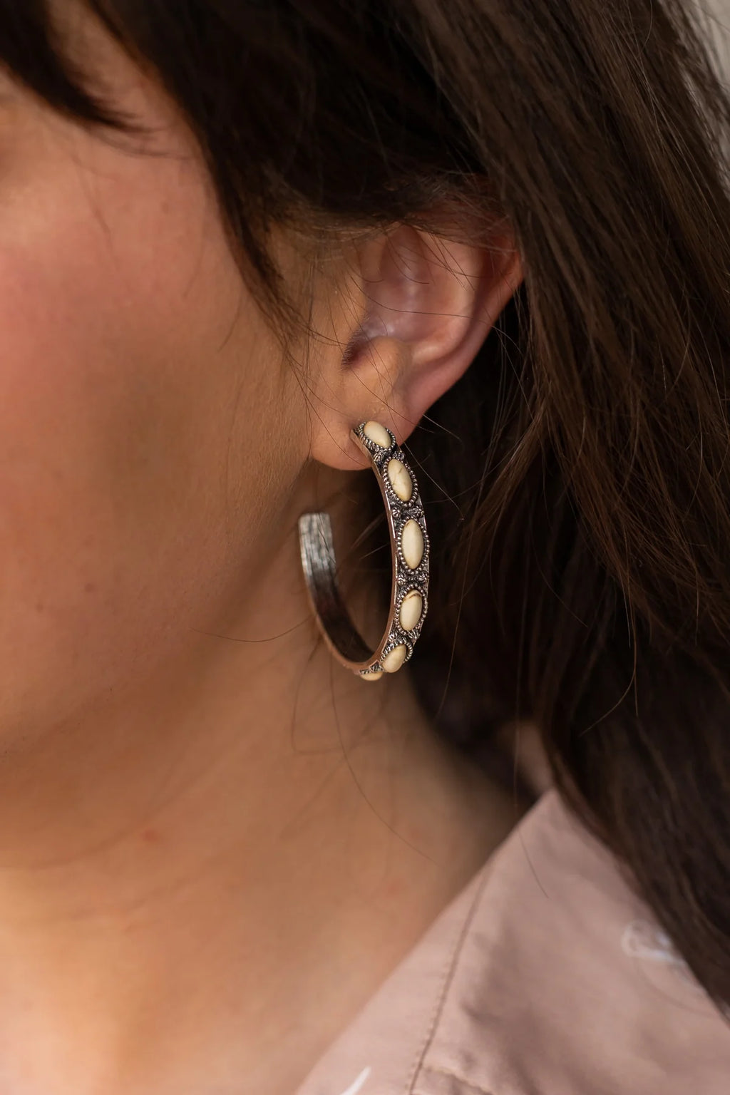 Darlin' Please Cream Howlite Rock Silver Hoop Earrings
